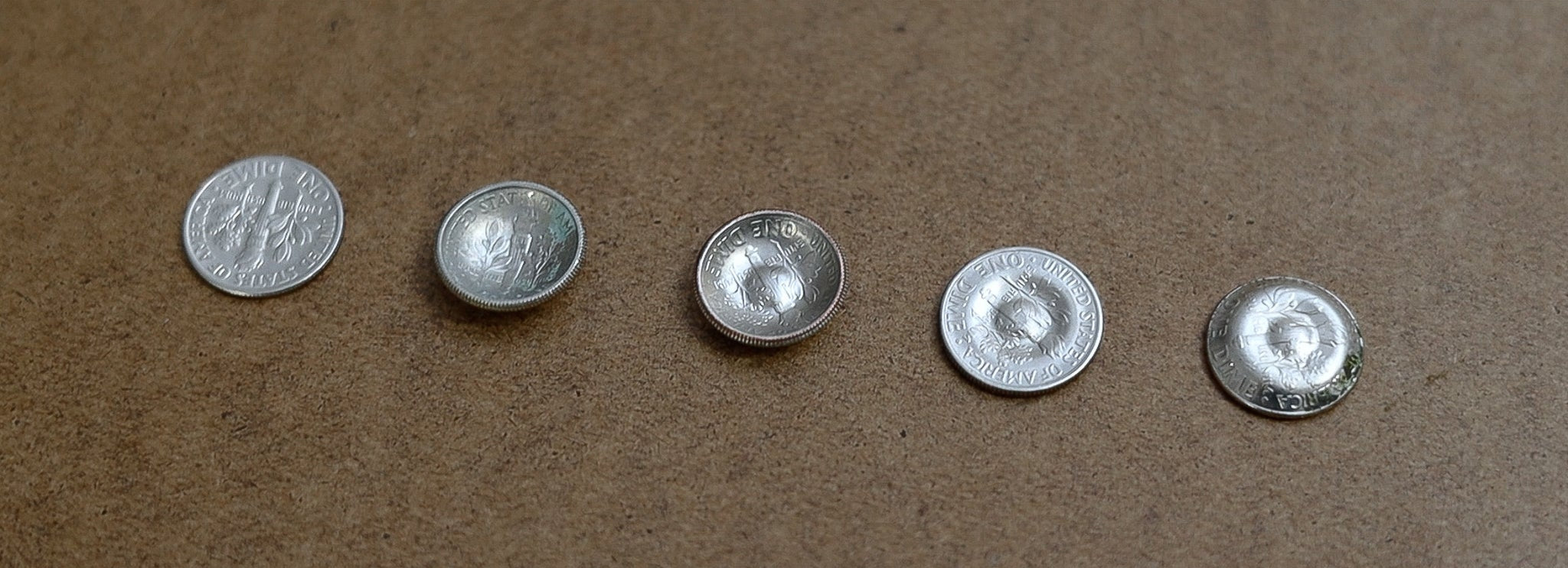 Object from Nothing relies on local materials to make all of our products, and hardware is a big part of that mission. They could be called "local currency buttons", because the concept is bigger than just dimes. This method of making hardware can be adapted and applied in communities around the world. Anywhere soft metal coins are used as low-value currency.