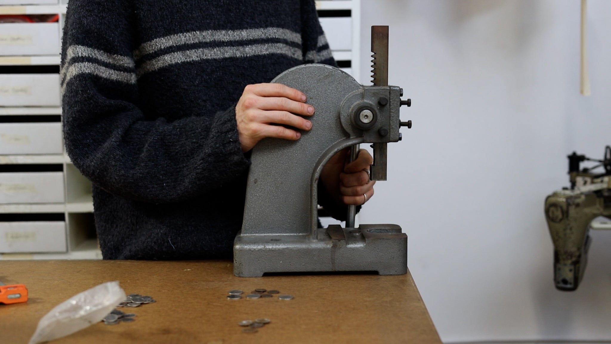Each button is hand pressed. We use a jeweler's dapping block to get different radiuses for internal & external curves.